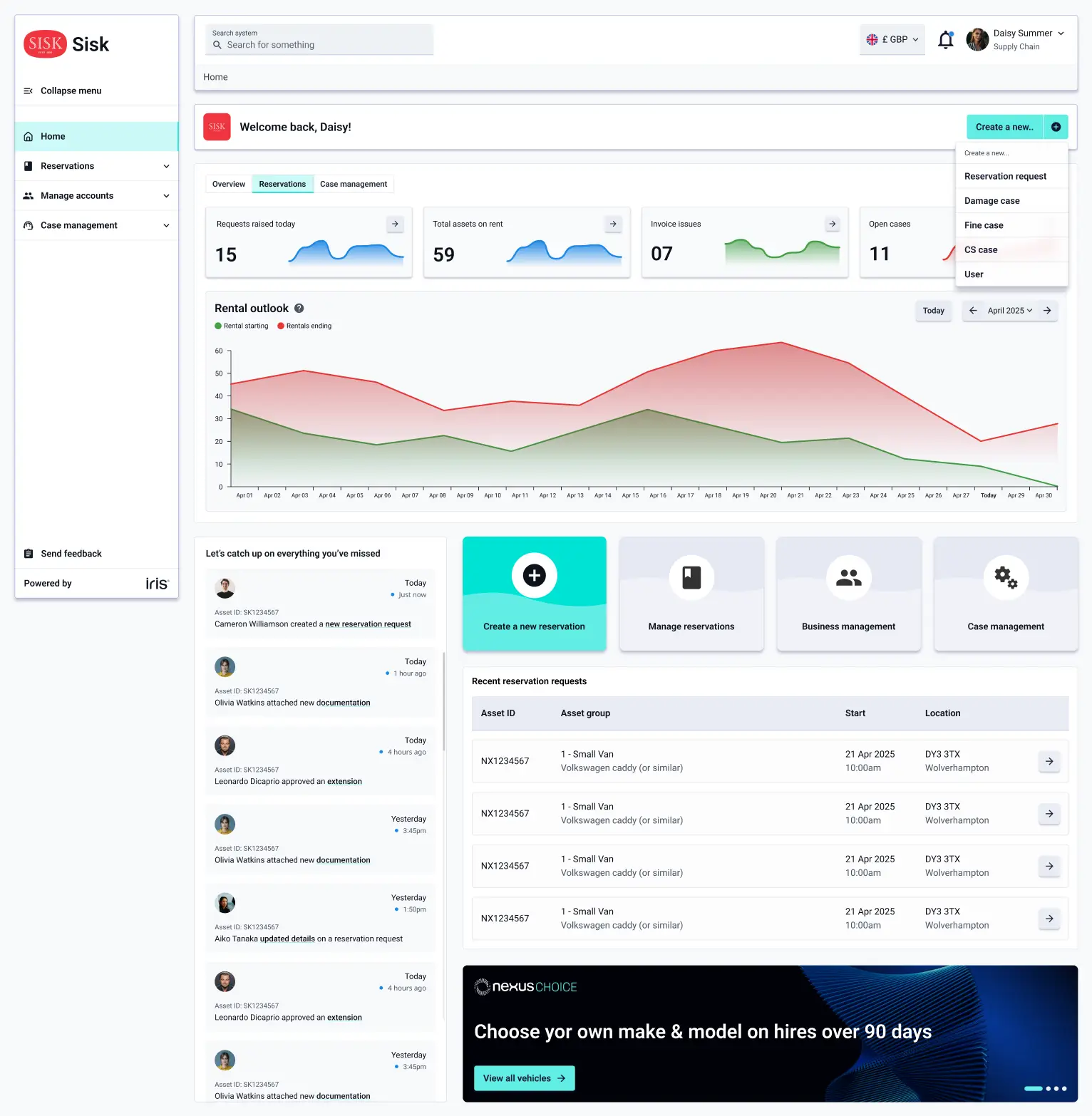 Control rental spend with pre-defined account restrictions, trend mapping and complete visibility of costs across different business areas. Manage damages, fines and invoices directly through Nexus.
